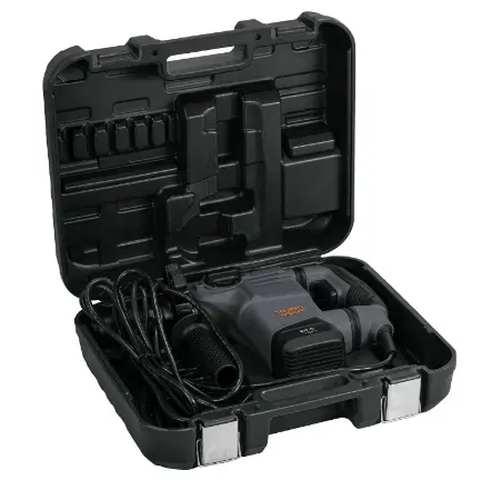 Un taladro percutor en un estuche negro, ideal para trabajos de perforación y demolición. Potente y versátil, este taladro es una herramienta imprescindible para cualquier proyecto de construcción o bricolaje. ¡Hazte con él y completa tus tareas con facilidad!